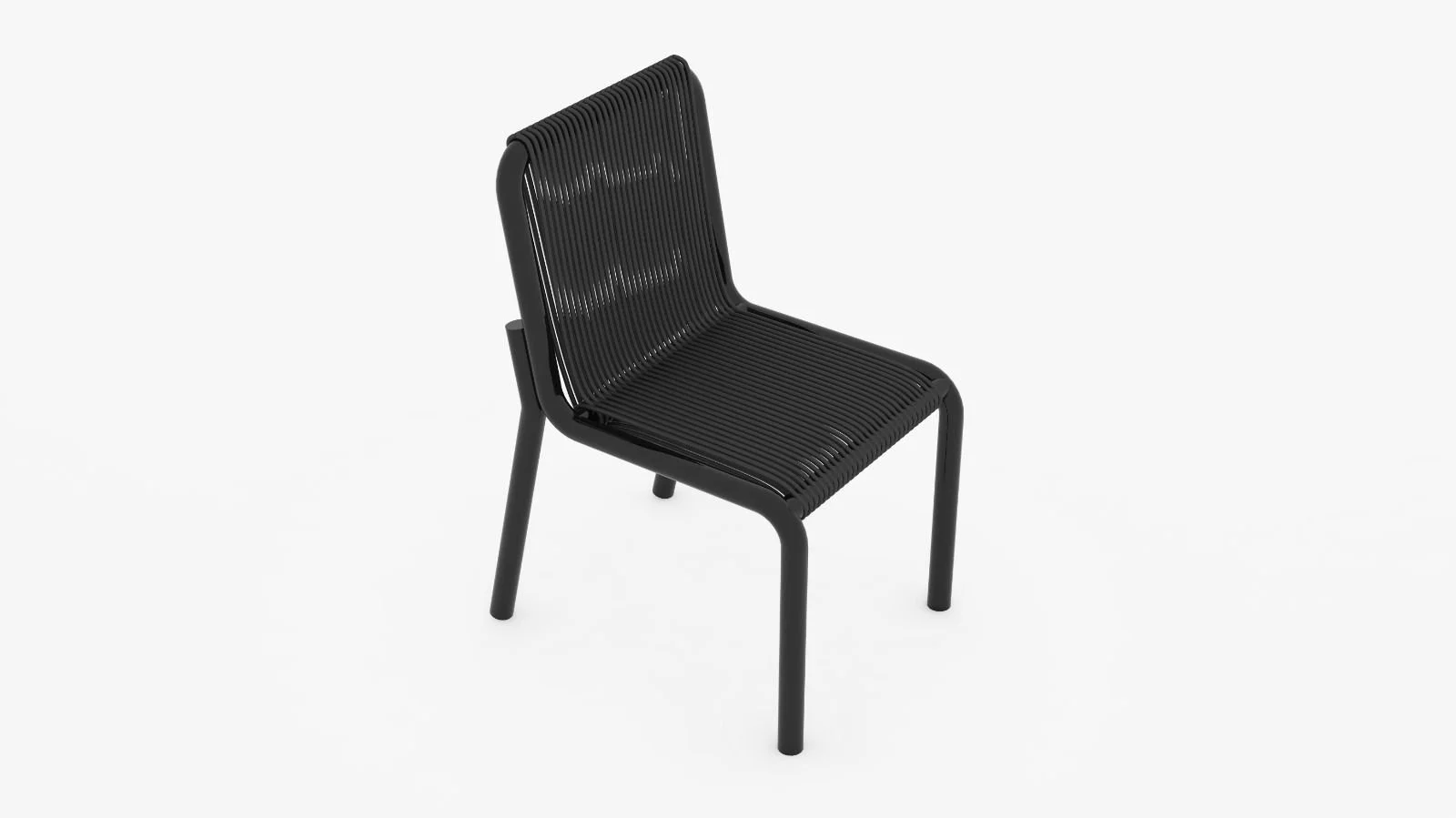 La cadira Biba està dissenyada per a l'ús exterior. Està fabricada amb una estructura de tub d'acer de 30 mm. El seient i el respatller estan recoberts de corda polièster trenat, que fan que la cadira sigui còmoda i atractiva.