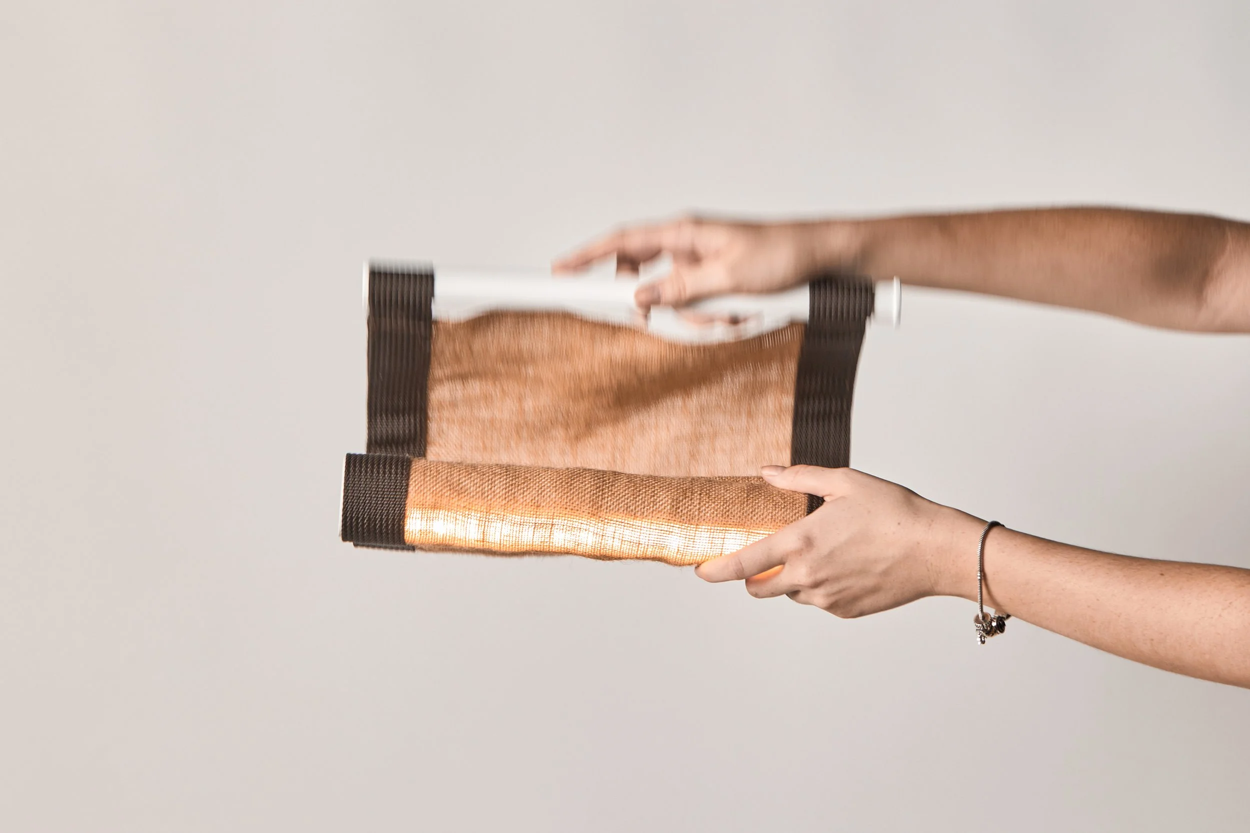 El movimiento y la versatilidad hacen que Rollet sea único. Una lámpara portátil o de sobre mesa que genera una luz indirecta que aporta calidez. Gracias al tejido, su principal característica, hace que la luz proyectada se refleje sobre sí misma y, al mismo tiempo, sobre los objetos que la rodean.