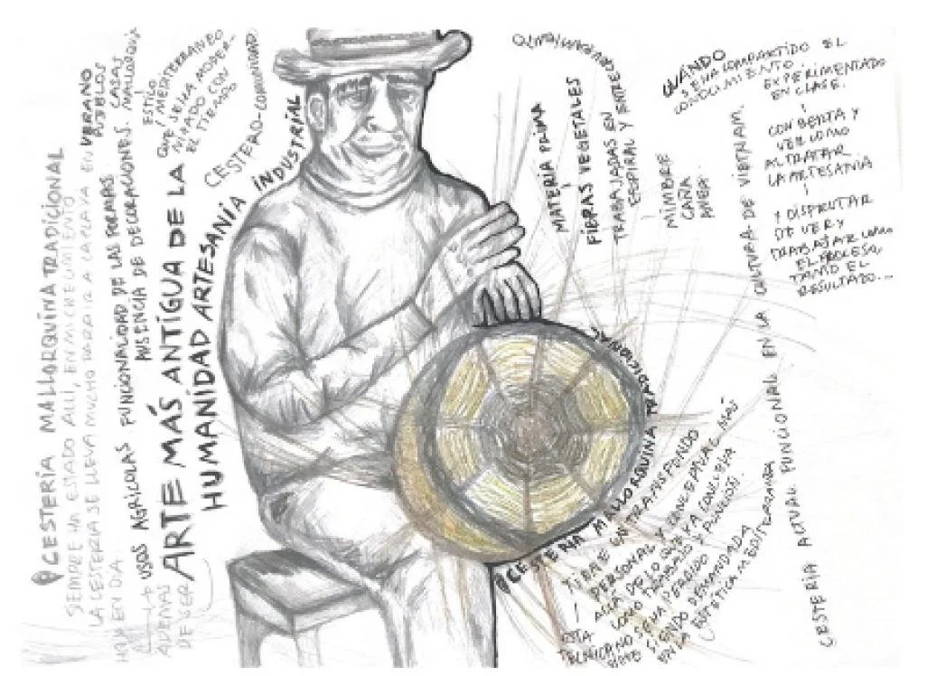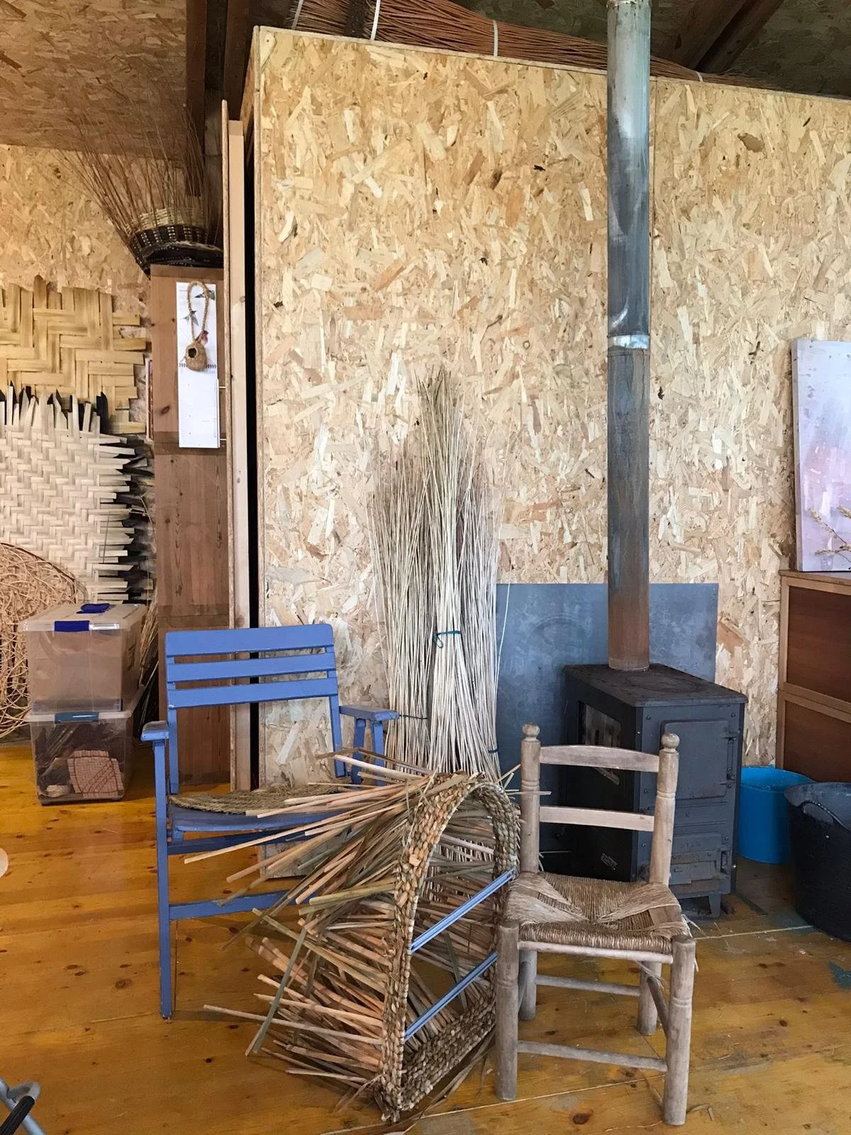 Mediante la artesanía de la cestería y su técnica realizamos el marco del espejo en el taller de Ona Trepat, artesana especializada en trenzado de enea.